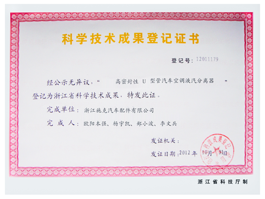 : 科学技术成果登记证书